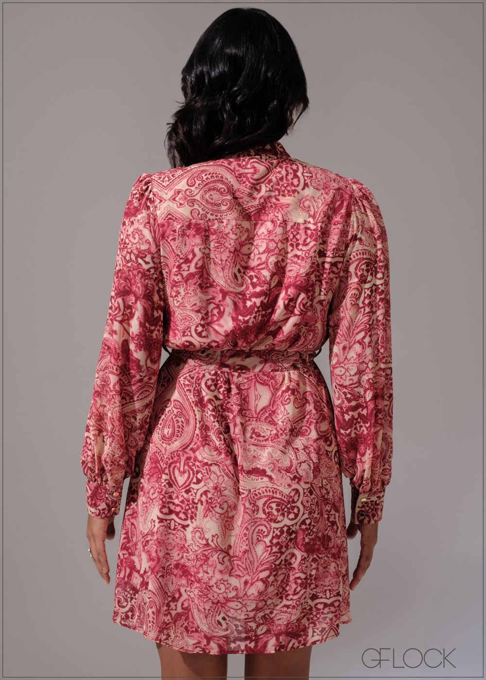 Bishops Sleeves Tunic Collared Midi Dress - 300525