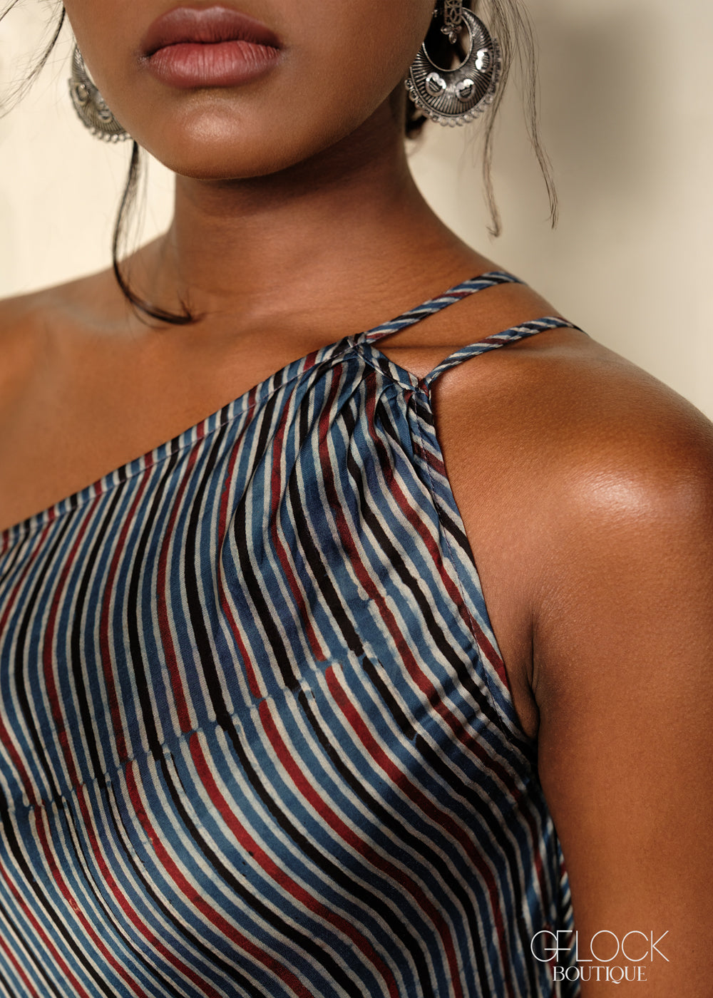 - One-shoulder neckline for a clean, contemporary look