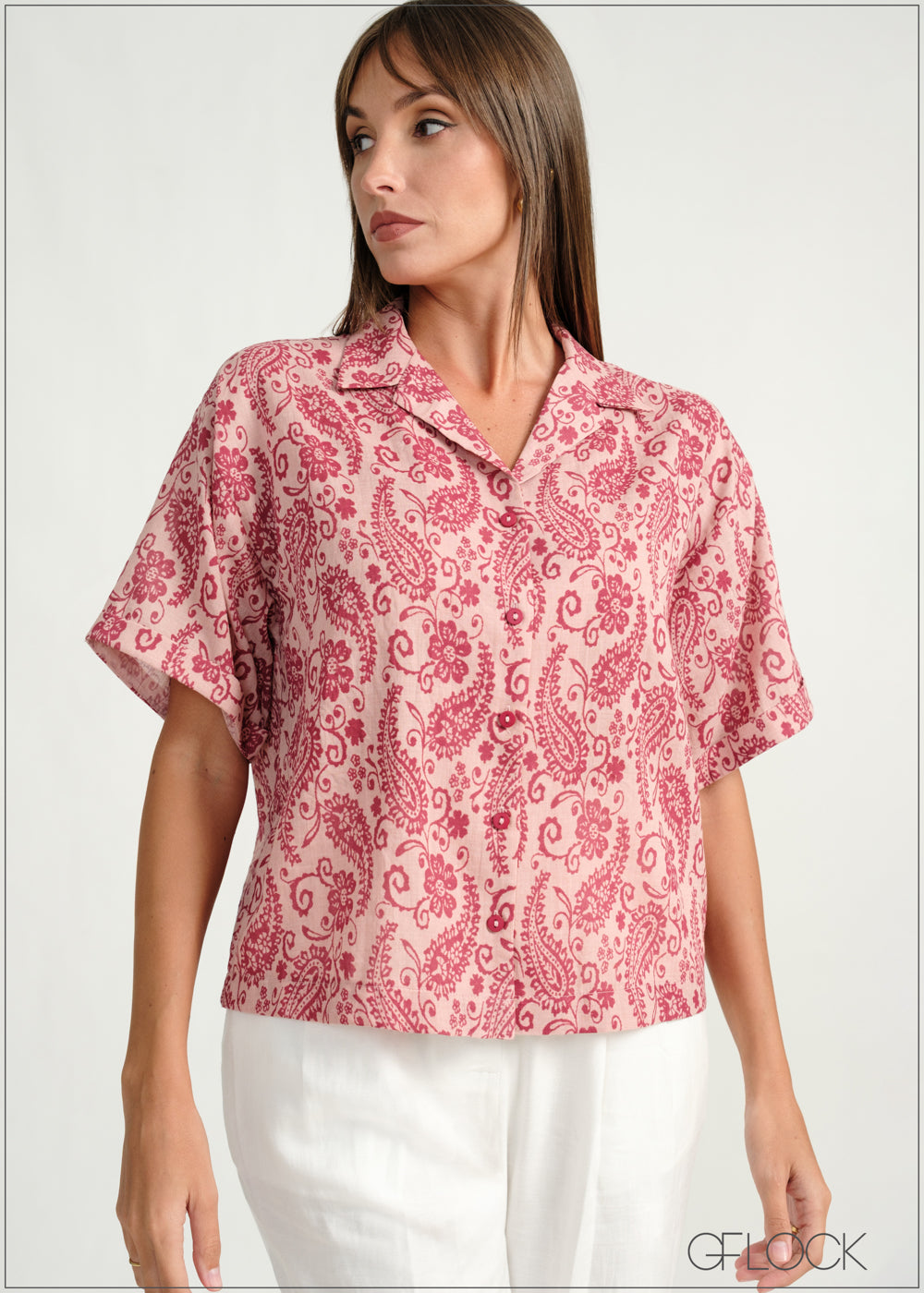 Cuban Collar Printed Shirt - 160226