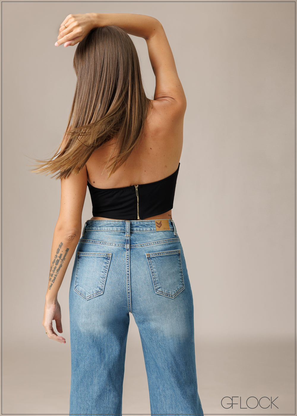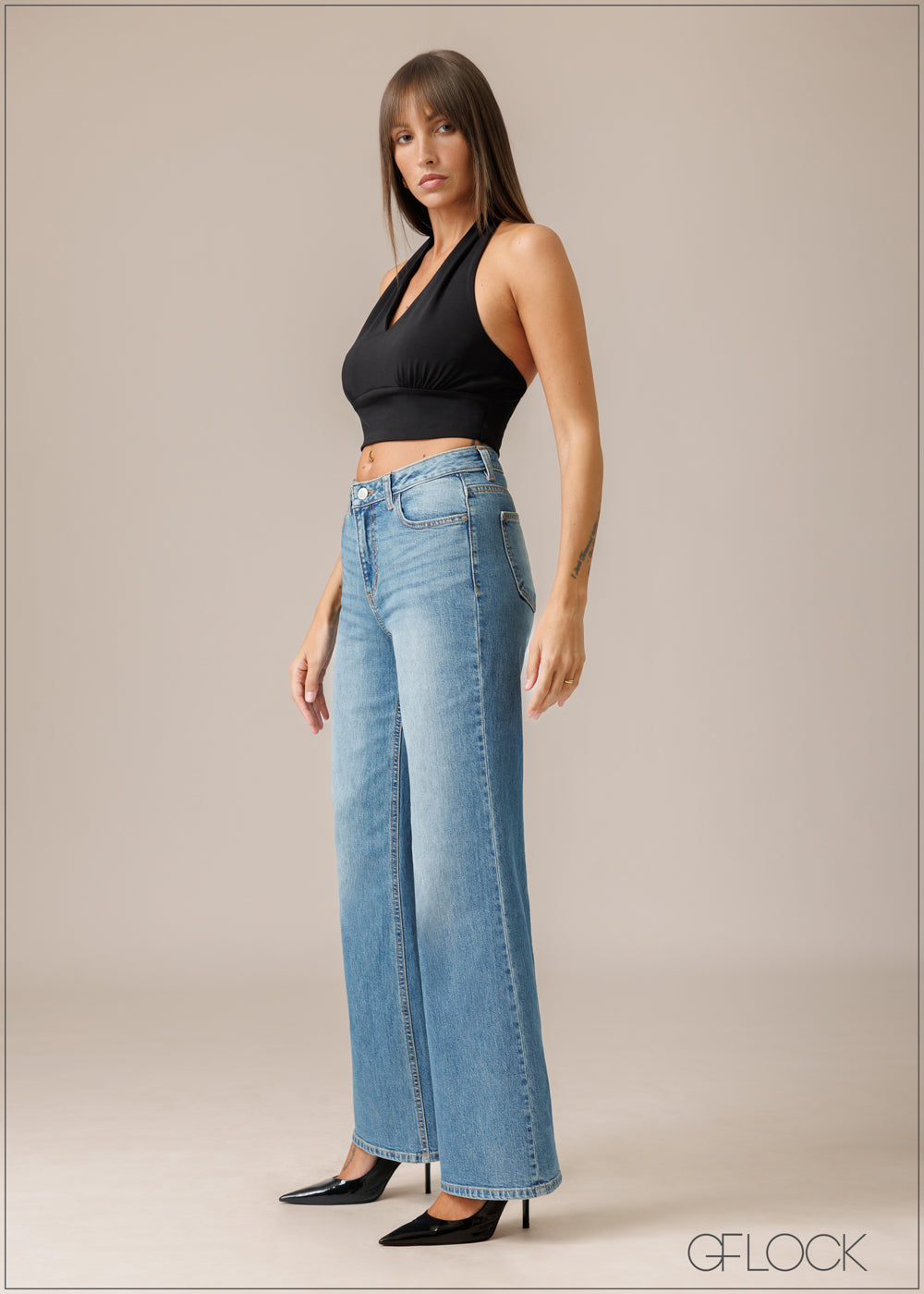 Mid Wash Wide Leg Jean - Long Length - 210326D